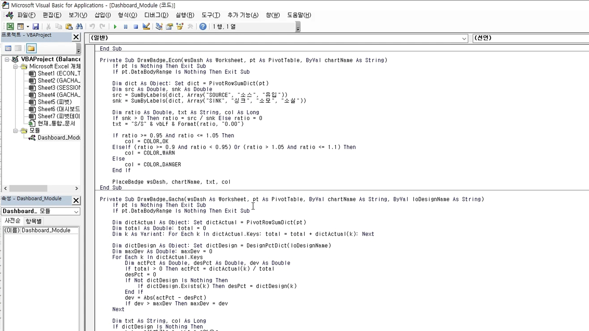 엑셀로 밸런스 공식을 만들고,