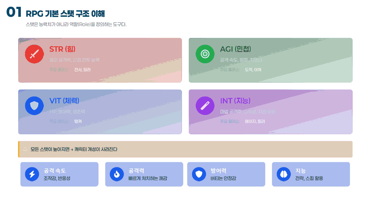 공방 스탯 입력을 넘어, 전투를 '시간'과 '유저의 경험'으로 치환하고, 데미지 파이프라인과 스킬 계수를 통해 게임의 호흡을 완벽하게 제어하는 구조 설계하기